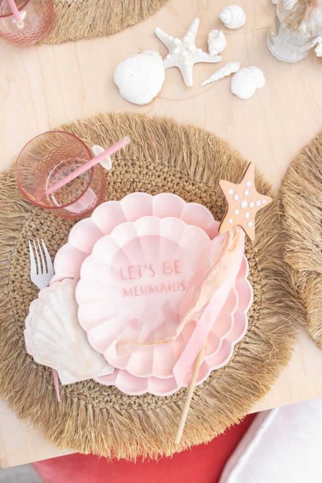 Mermaid-inspired decor invites a whimsical touch to any gathering. Soft pink hues blend seamlessly with natural textures, creating a relaxed yet enchanting atmosphere.