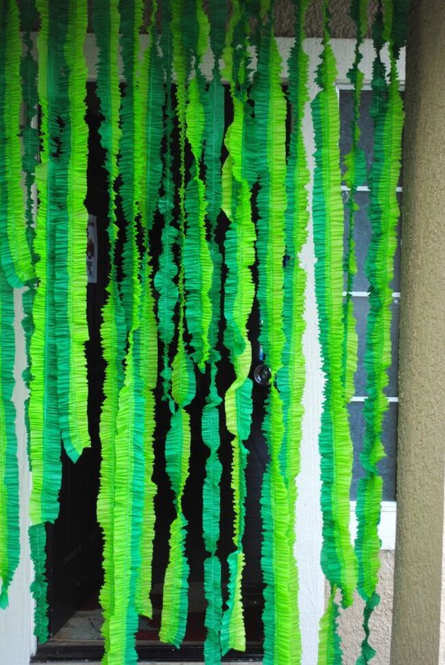 Streamers of vibrant green hues create a lively entrance that instantly uplifts the mood. These textured decorations, with their playful waves and varying shades, invite curiosity and excitement as you approach your door.
