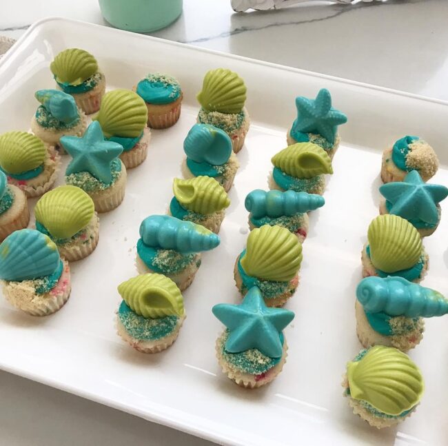 Underwater-themed cupcakes are a delightful treat that transport you to a coastal paradise. Featuring bright turquoise frosting and textured seashells, these bites invite vibrant beach vibes into any gathering.