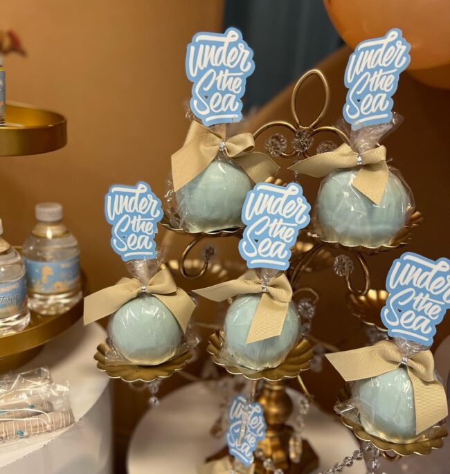 Ocean-themed party favors are a delightful way to immerse guests in a sea of fun. Picture vibrant blue and turquoise colors swirling together, reminiscent of ocean waves.