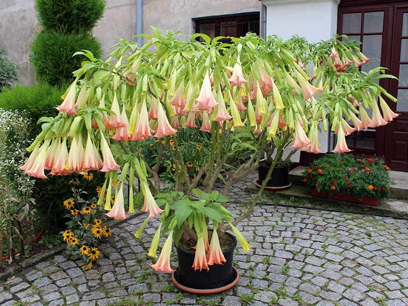 Brugmansia is an excellent shrub to grow in a container, even for beginners. But, you need to know a few tips. First of all, pick a large container, the minimum diameter is two feet. It will allow the root system to develop so the plant can grow healthy and vigorously.