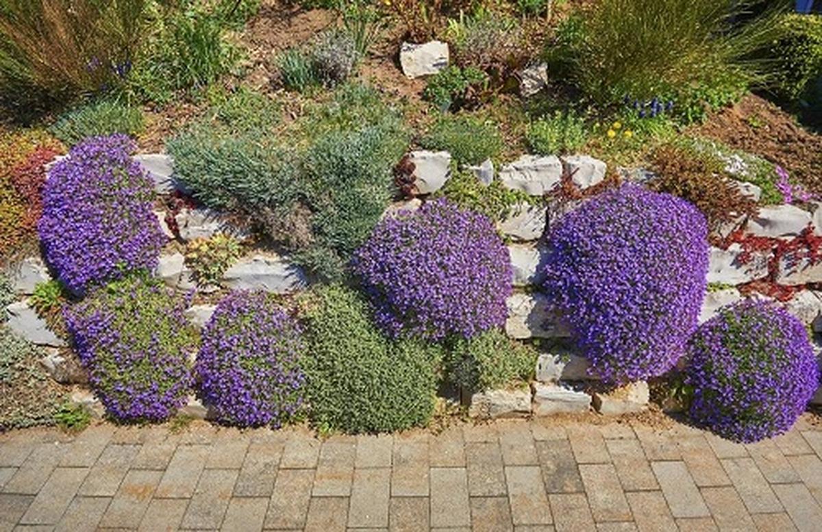 Rock Cress, with its low-growing, spreading habit, forms a dense mat of foliage that’s perfect for lining walkways. In spring, it becomes covered in small flowers in shades of pink, purple, or white, creating a carpet of color.