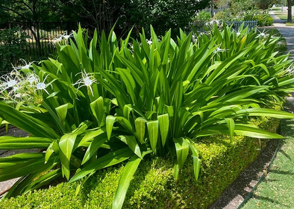 Spider Lilies bring an elegant touch to walkways with their dark green foliage and fragrant white flowers. These plants thrive in both sun and partial shade, making them versatile for various garden settings.