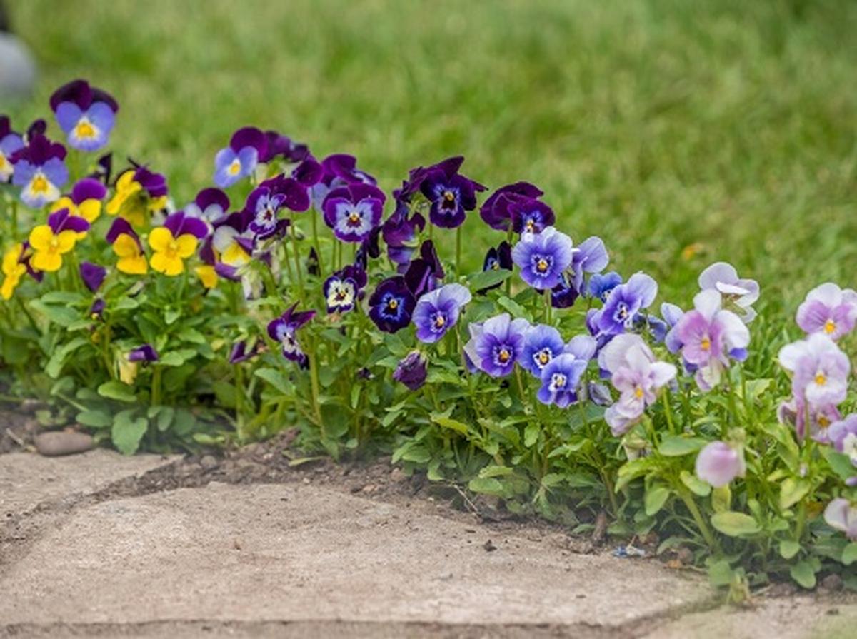Pansies bring a wide range of bright colors, from purple and blue to yellow, pink, and white. Their flat, rounded flowers create a cheerful display along walkways, offering color throughout the cooler months.