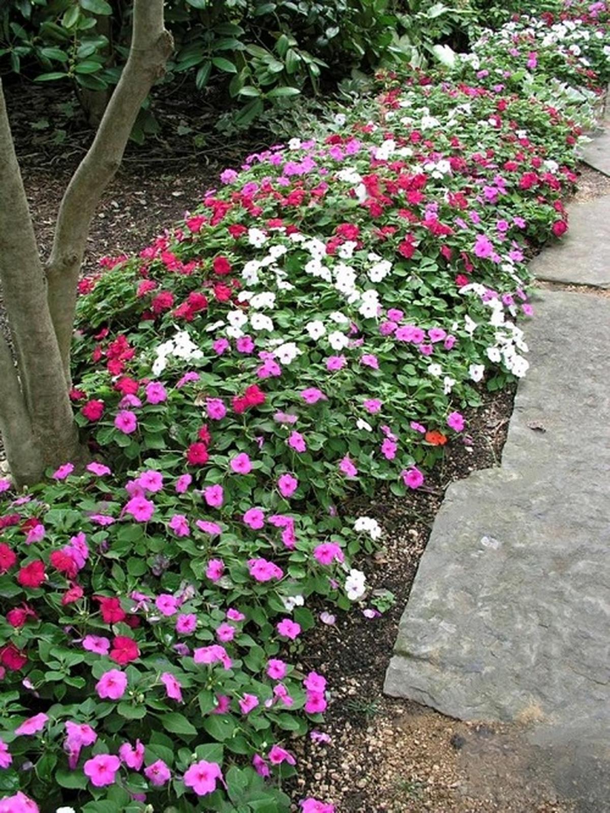 Impatiens, with their brightly colored flowers, bring a cheerful and inviting atmosphere to walkways. These shade-loving plants bloom abundantly, creating a carpet of color throughout the spring and summer.