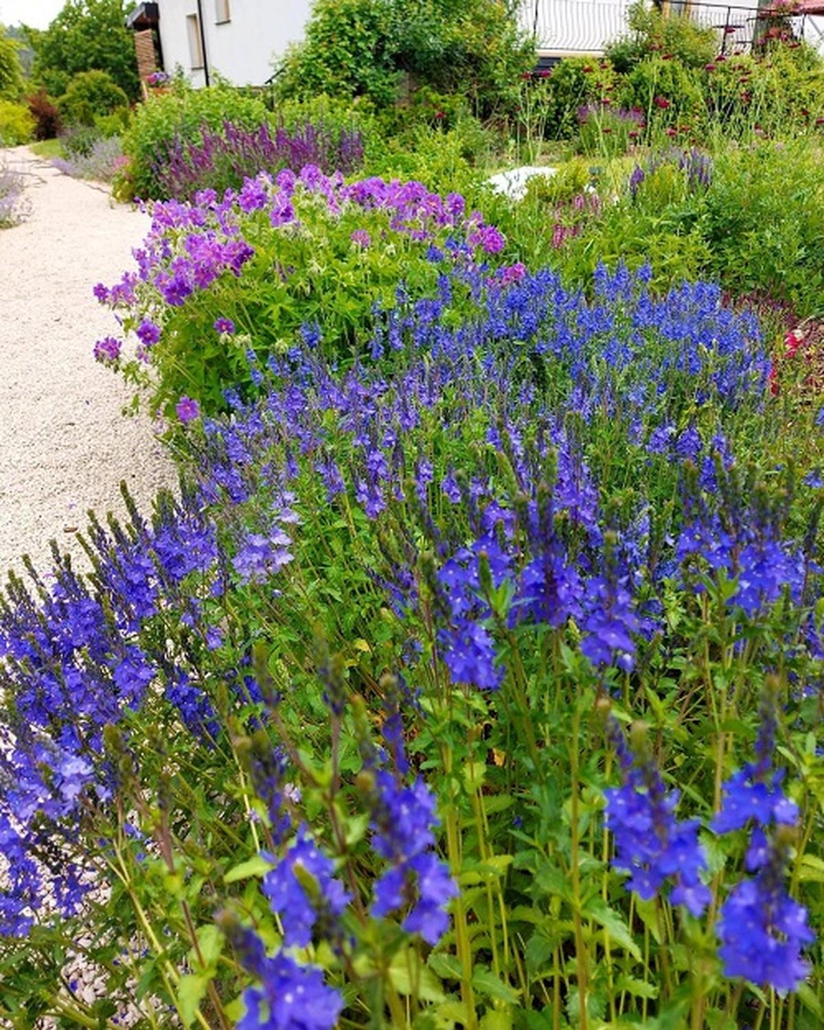 Speedwell features spikes of violet-blue flowers that bloom from late spring to mid-summer. This easy-to-grow perennial brings height and color to walkways, with its long-lasting blooms adding visual interest.