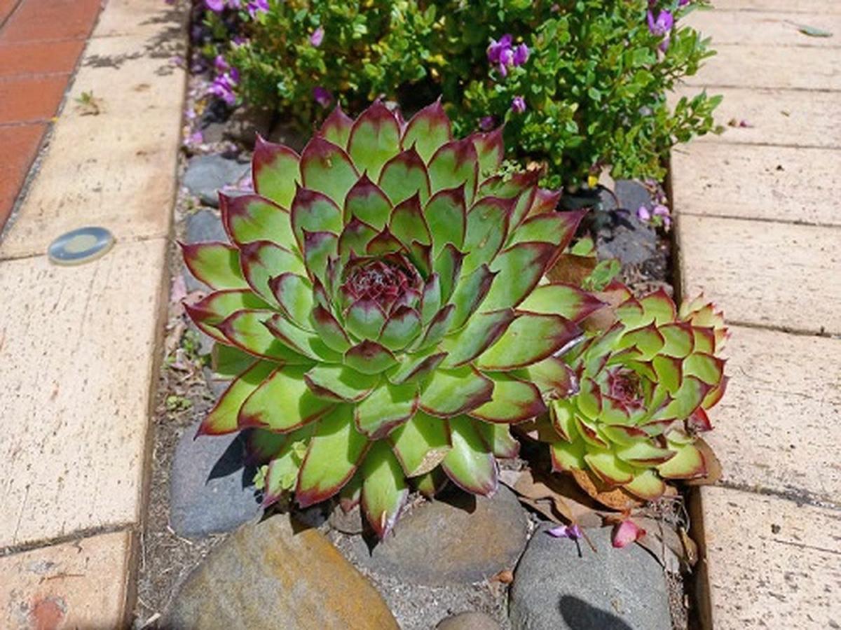Hens and Chicks form low-growing rosettes of fleshy leaves that tolerate poor soil and drought conditions. This hardy succulent is a perfect choice for walkways, adding unique texture with minimal care.