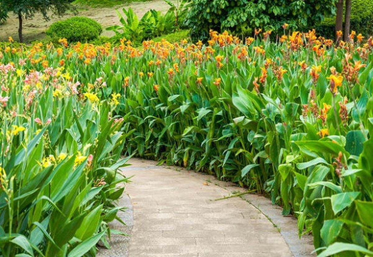 Canna Lilies are perfect for sunny areas, offering height and visual impact to garden paths.