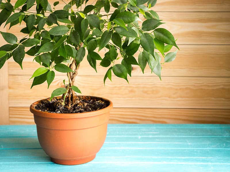 Ficus Benjamina or Weeping fig comes from Southeast Asia. In the USA, many people grow it indoors.