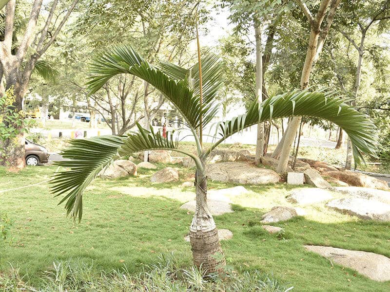 Phoenix sylvestris or Sylvester palm is best-known for its blue-green foliage. You can grow it from seeds easily. It needs a lot of sunlight and moderate water.